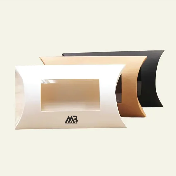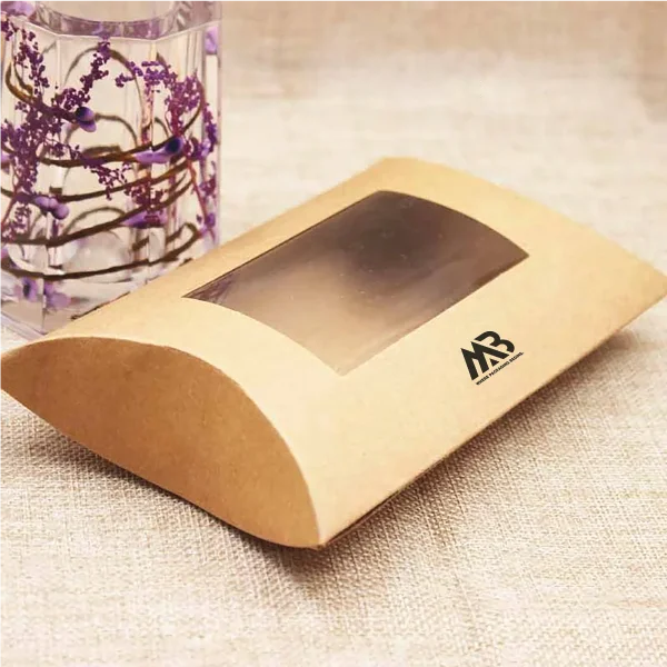 Pillow box with window lets customers preview chocolates, cakes, or hygiene products instantly, building trust and excitement before unboxing
